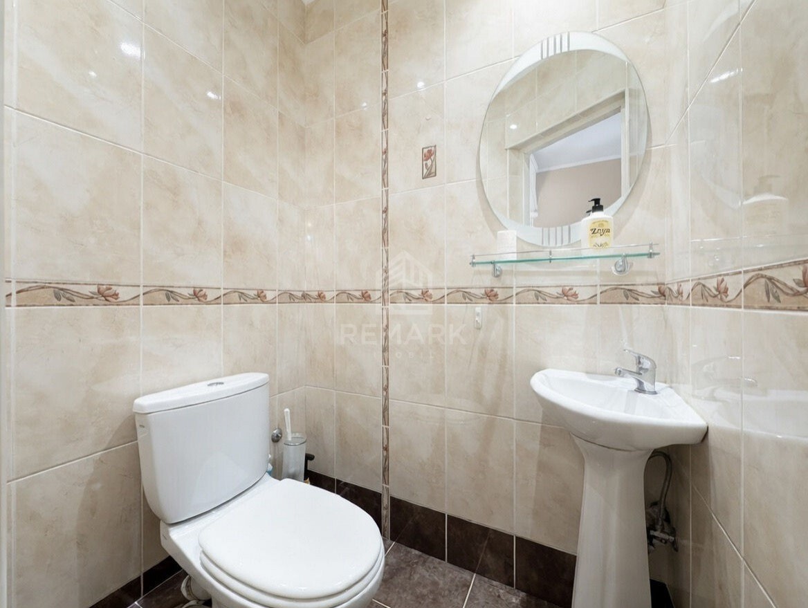 3 camere compartimentate în 2 dormitoare, 2 blocuri sanitare, living, bucătărie, terasă și antreu.