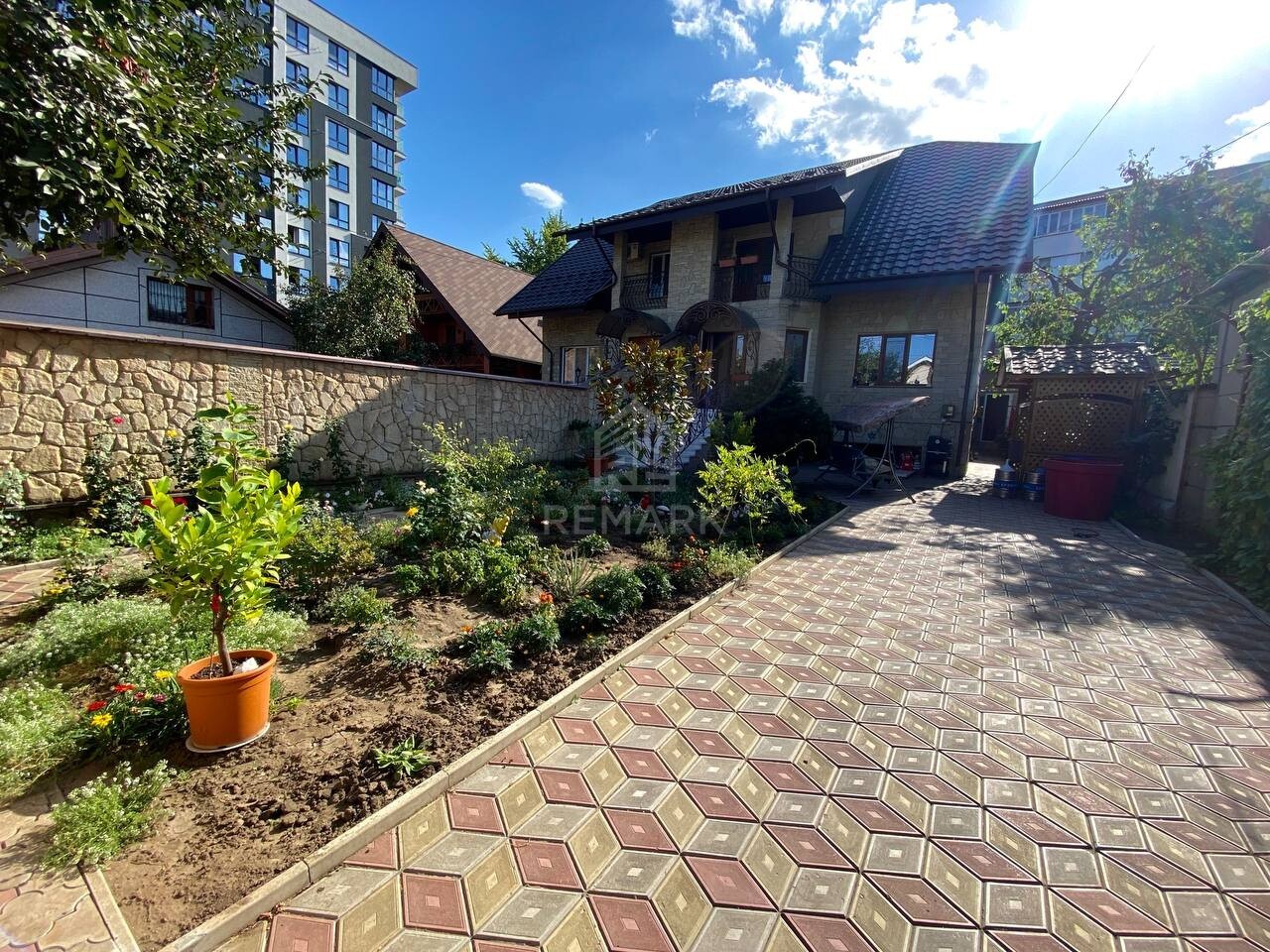 - Curtea amenajată cu pavaj