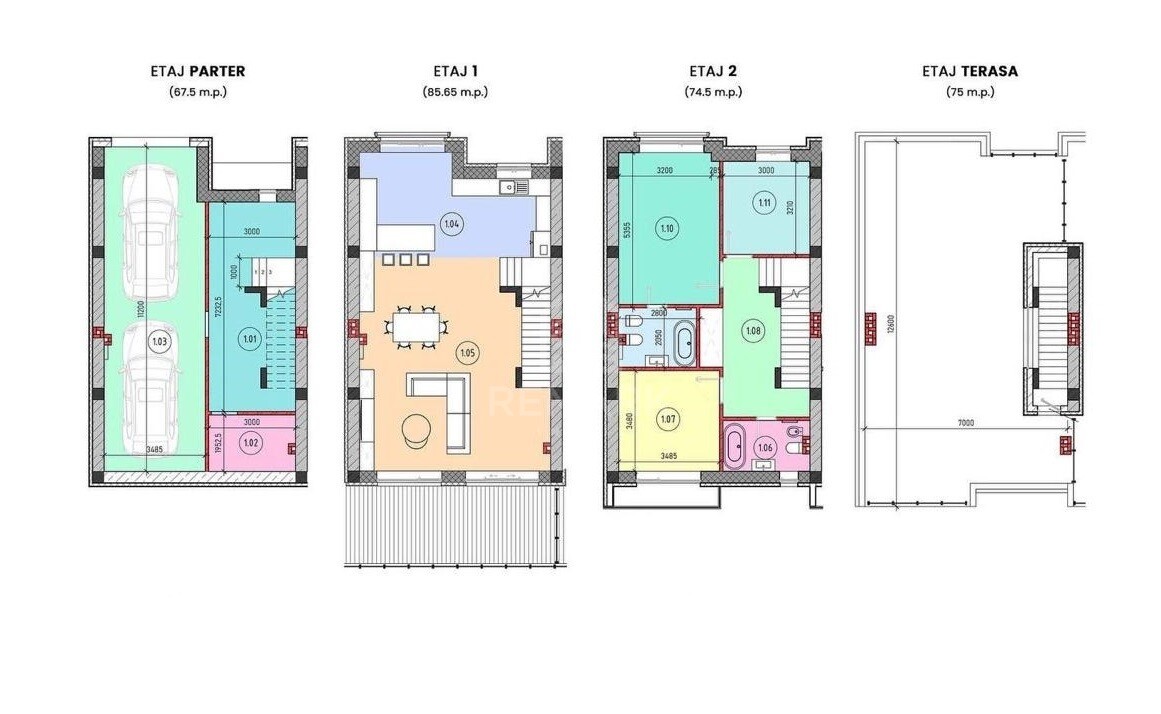 Nivelul 1 - garaj pentru 2 mașini, debara.