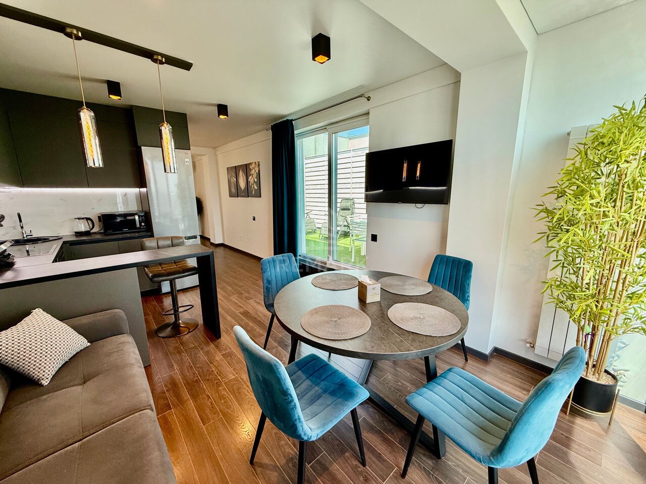 - Dotat cu: mașină de spălat, mașină de uscat, mașină de spălat vase, 2 TV, interfon.