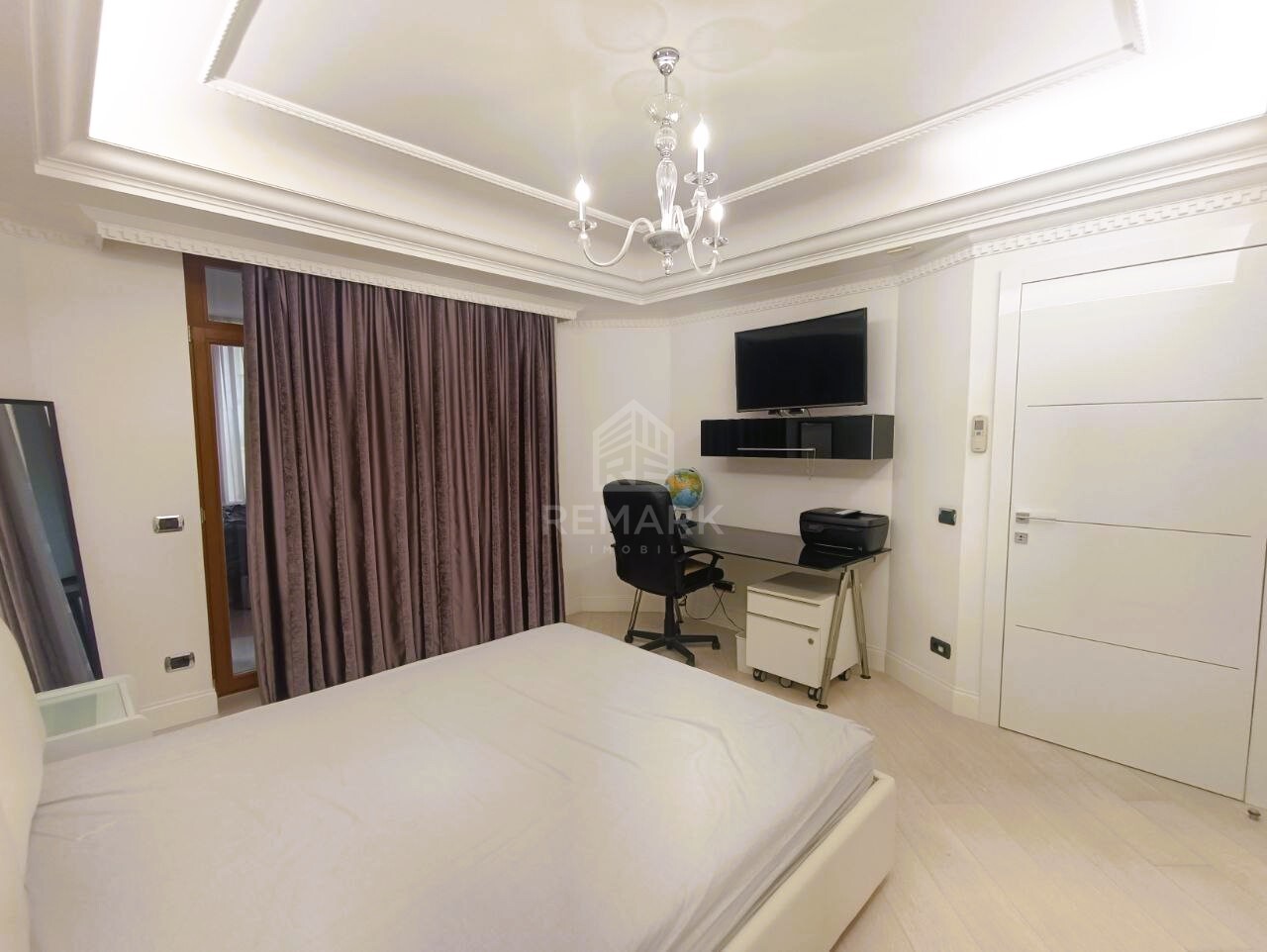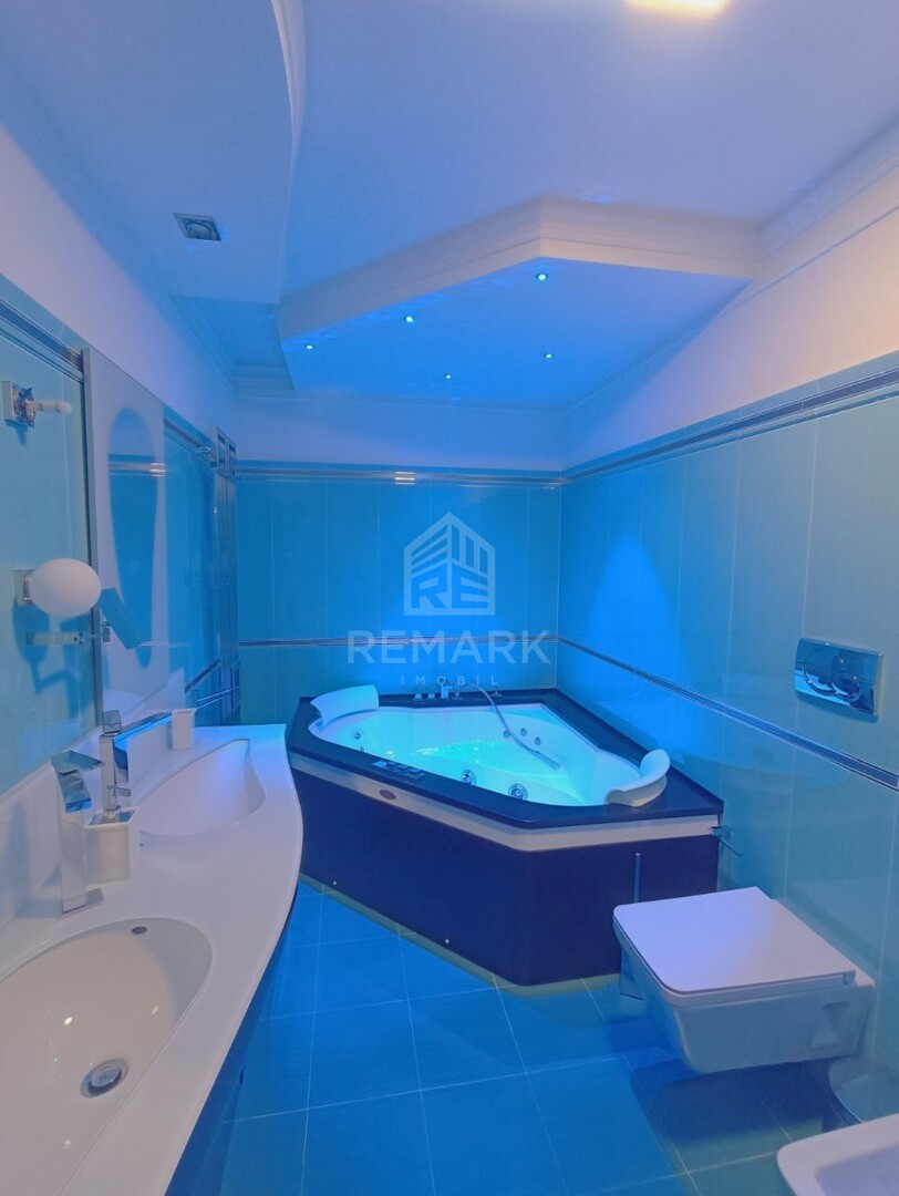 Suprafața totală de 150 mp. cu 4 camere, compartimentat în 3 dormitoare (dormitorul matrimonial dispune de bloc sanitar), garderobă, living spațios comasat cu bucătărie și 3 blocuri sanitare.
