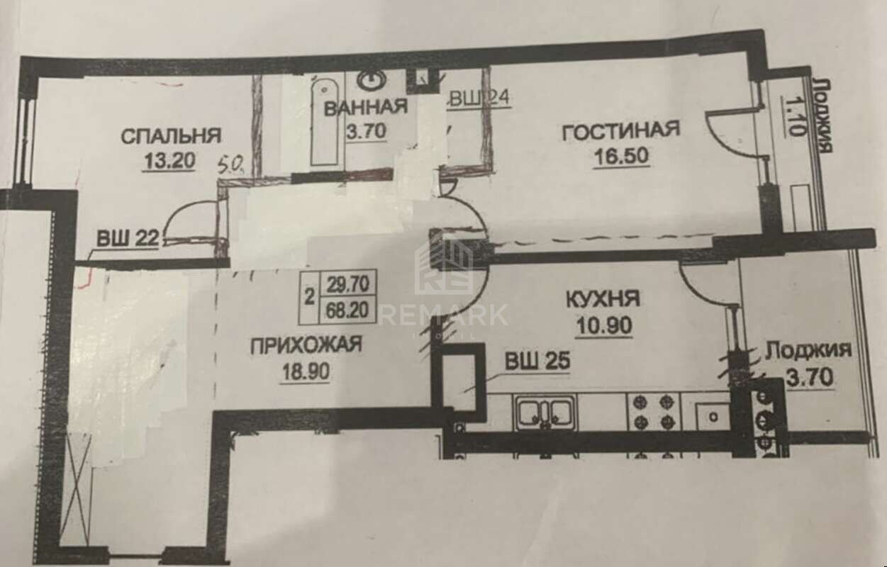 - Планировка: прихожая, кухня, балкон, 2 санузла и 2 спальни