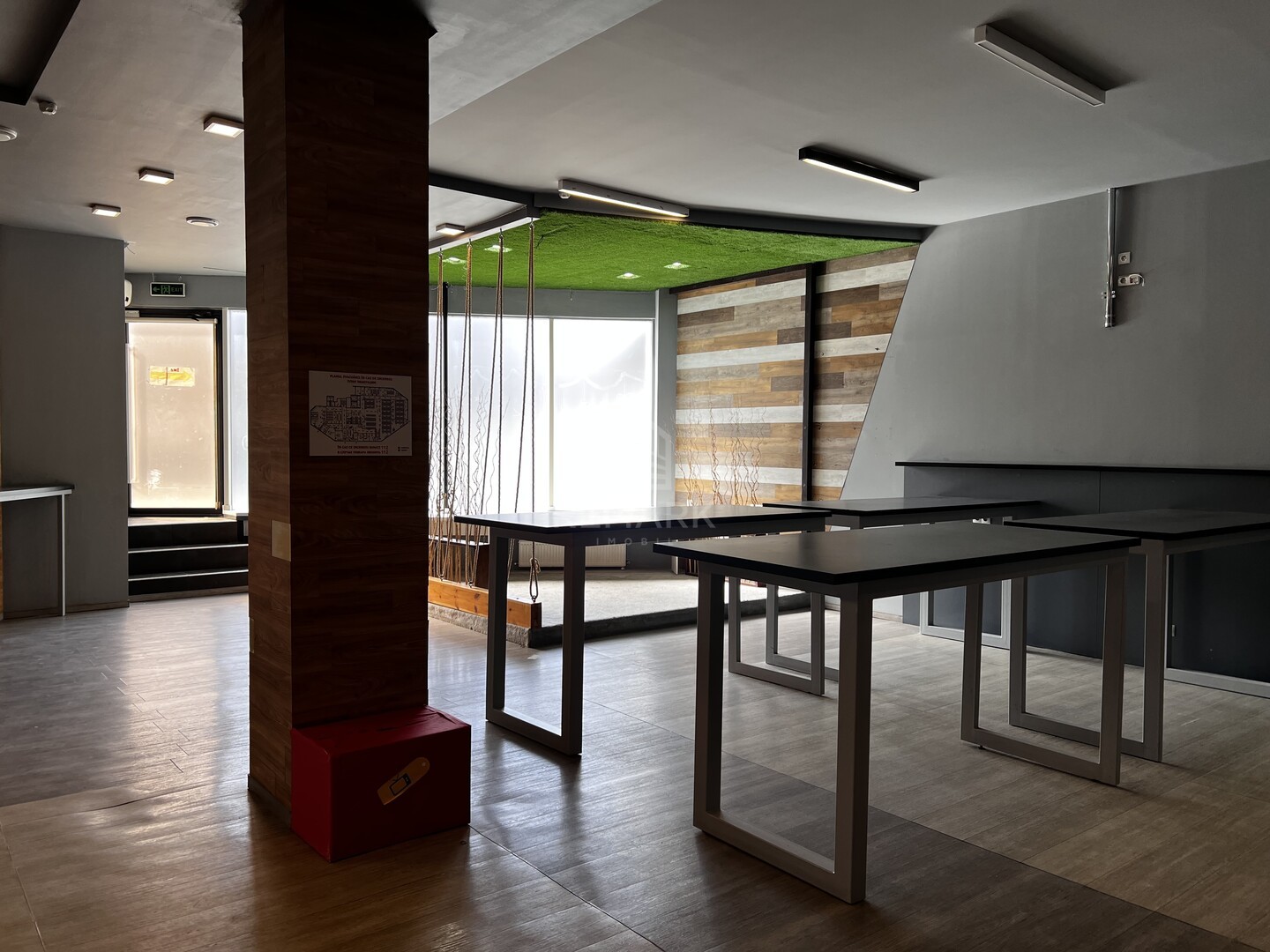 Compartimentat: zona de oficii, sala de instruiri, bucatarie, zona de relaxare.