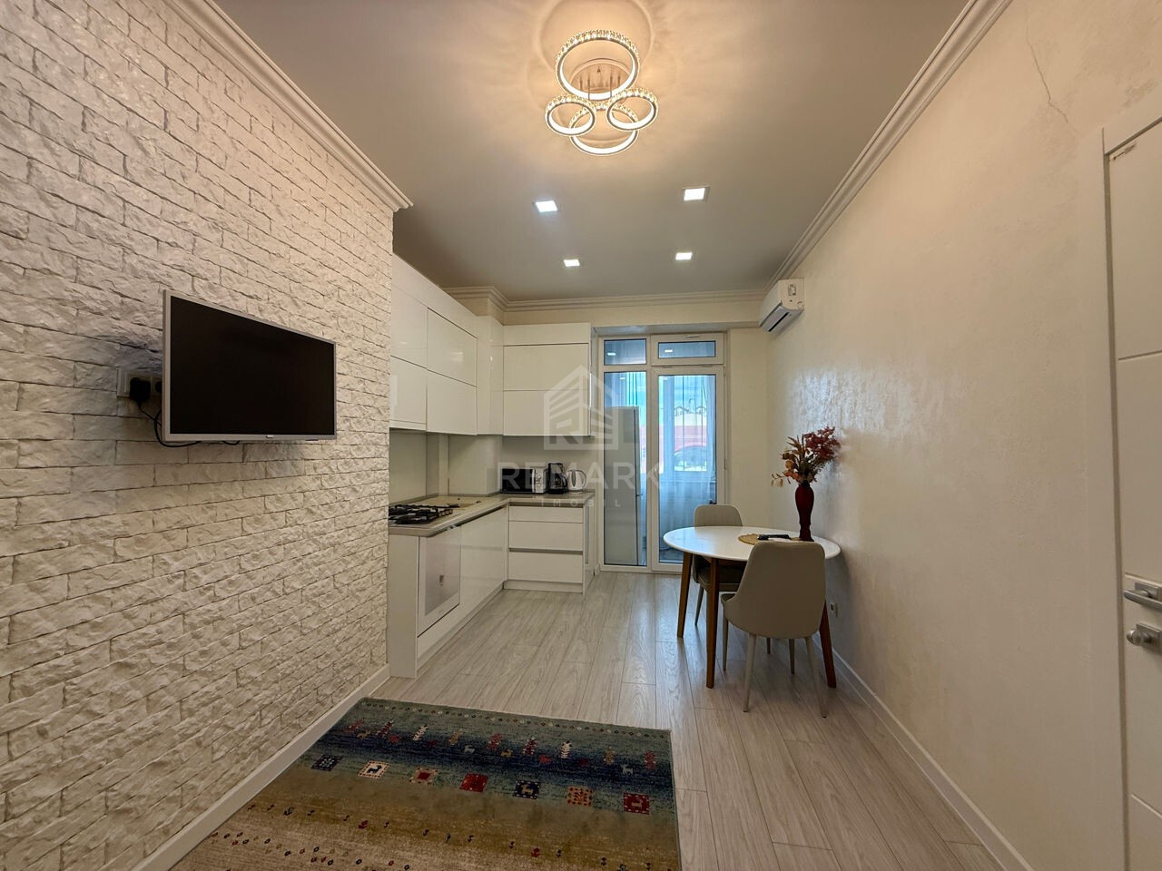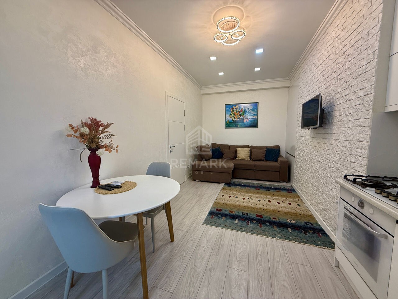 -2 camere compartimentate în dormitor, bloc sanitar, bucătărie + living, balcon.