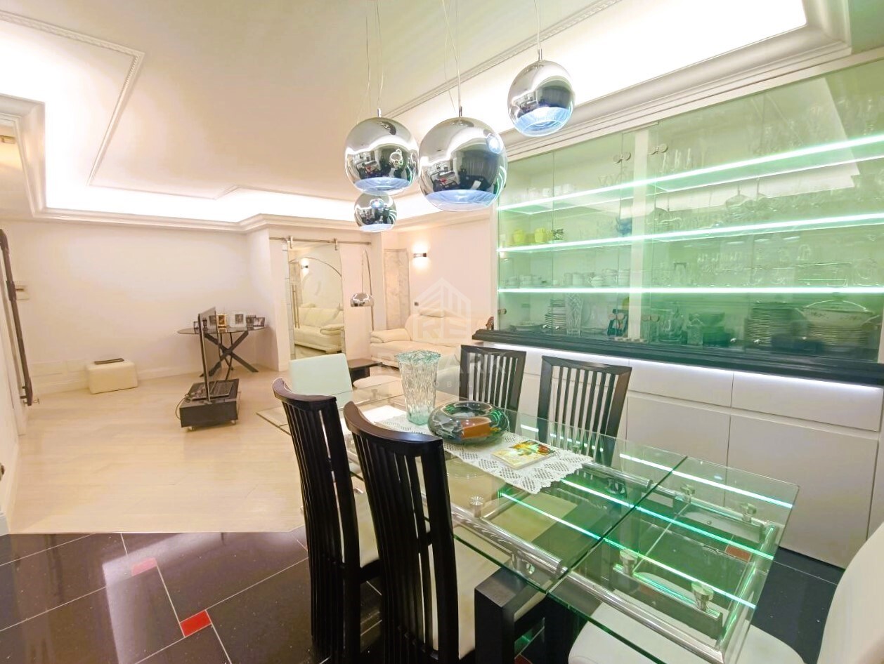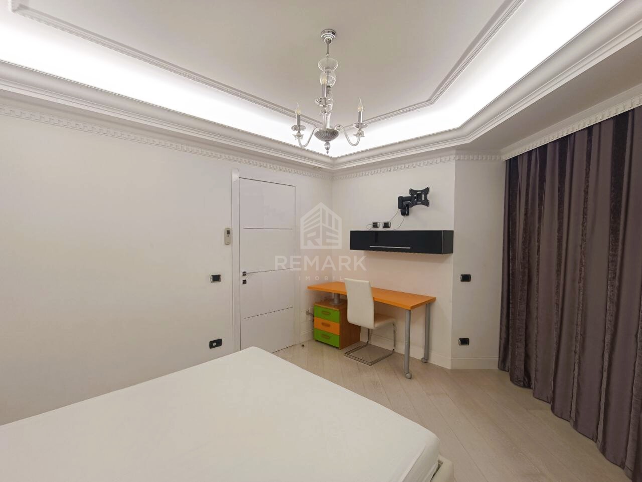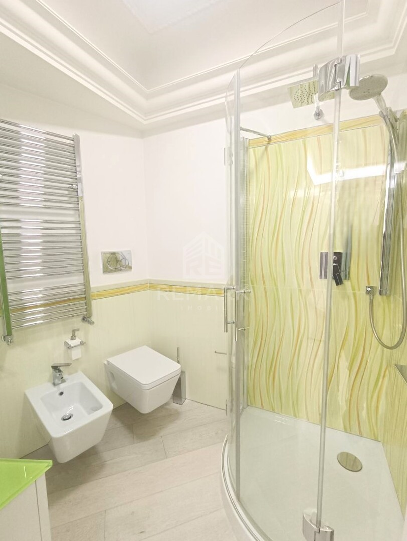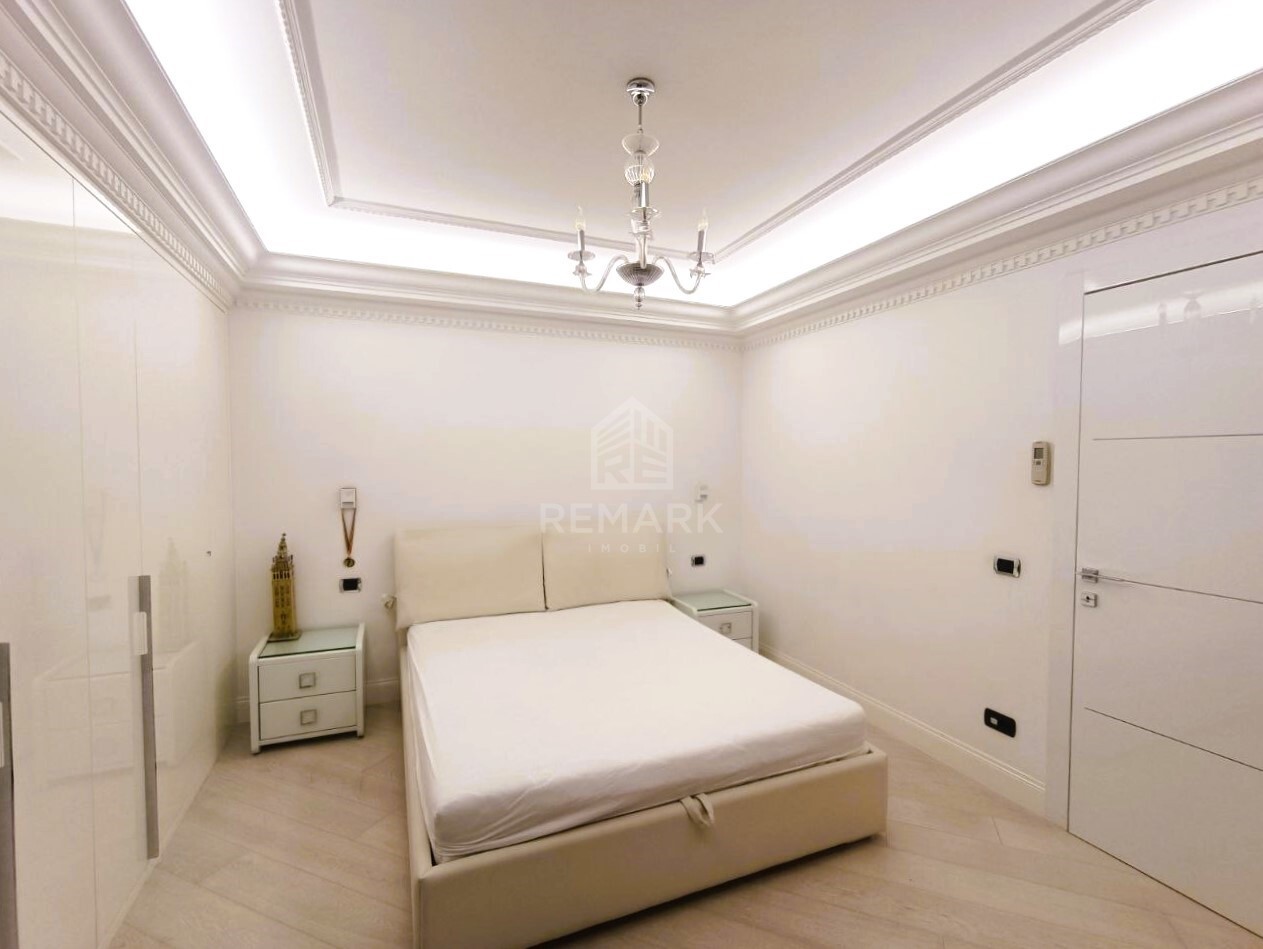 Suprafața totală de 150 mp. cu 4 camere, compartimentat în 3 dormitoare (dormitorul matrimonial dispune de bloc sanitar), garderobă, living spațios comasat cu bucătărie și 3 blocuri sanitare.