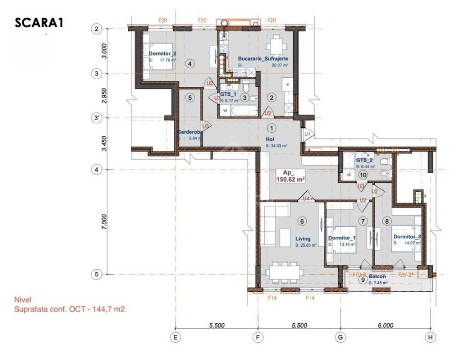 Suprafața totală: 144 mp.