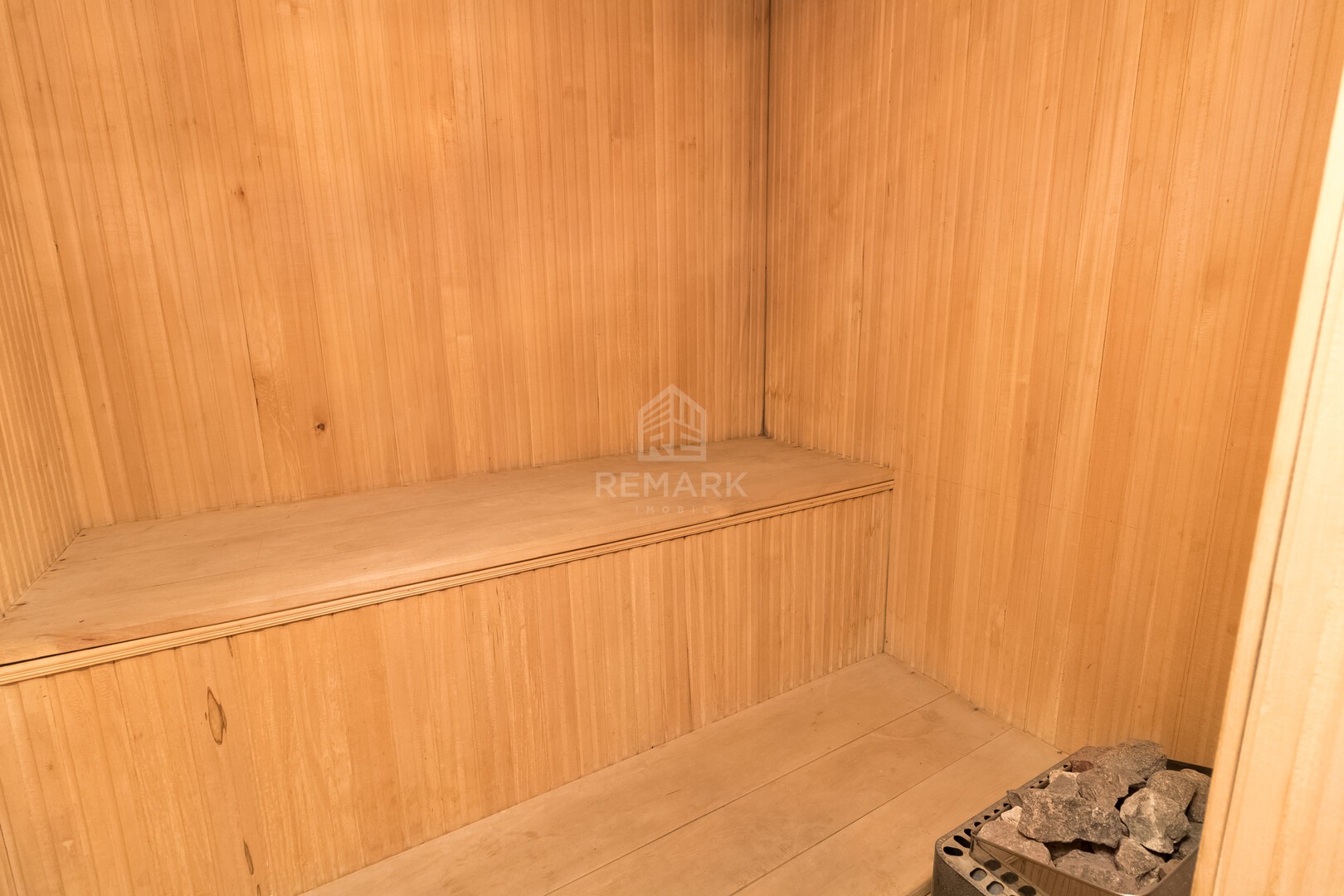 1 nivel - antreu, living, dormitor, bloc sanitar, saună.