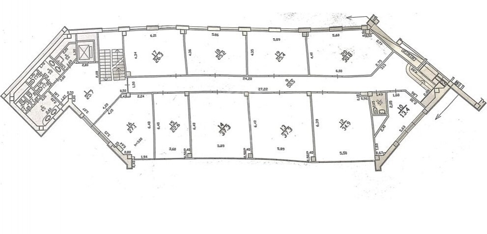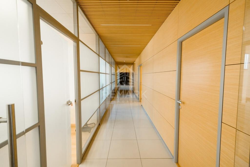 Compartimentare: open space, 7 birouri, bucătărie, 2 blocuri sanitare.