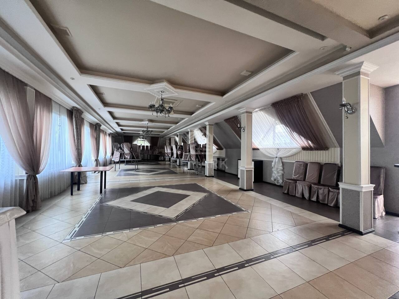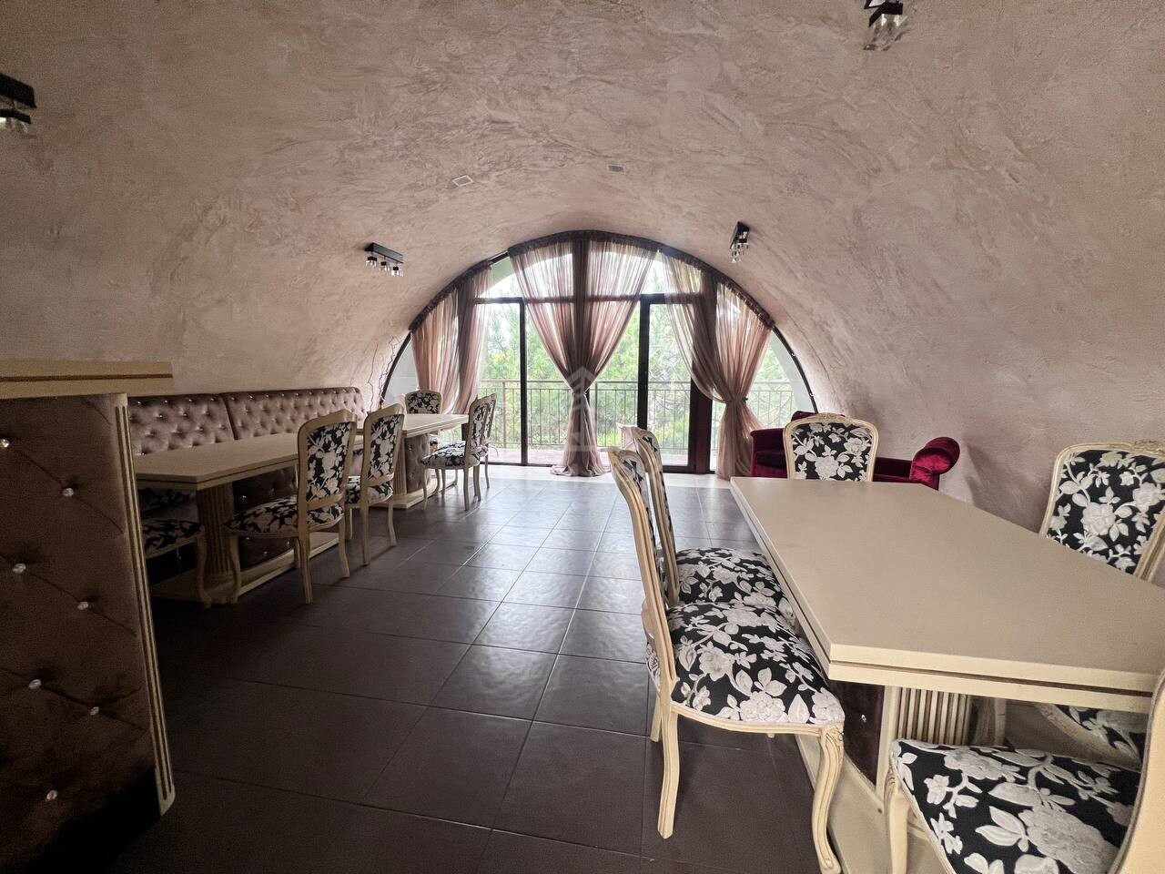 Общая площадь: 550 кв.м., на участке 2 сотки: 2 банкетных зала, VIP-зона, вместимость 100 гостей, террасы.