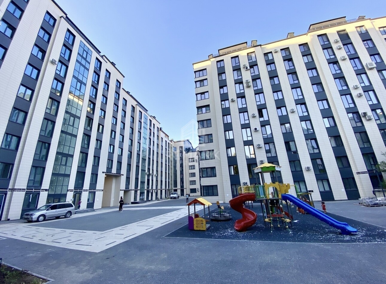 Двор дома закрытый, благоустроенный, с детской игровой площадкой, где ваши дети будут в безопасности.
