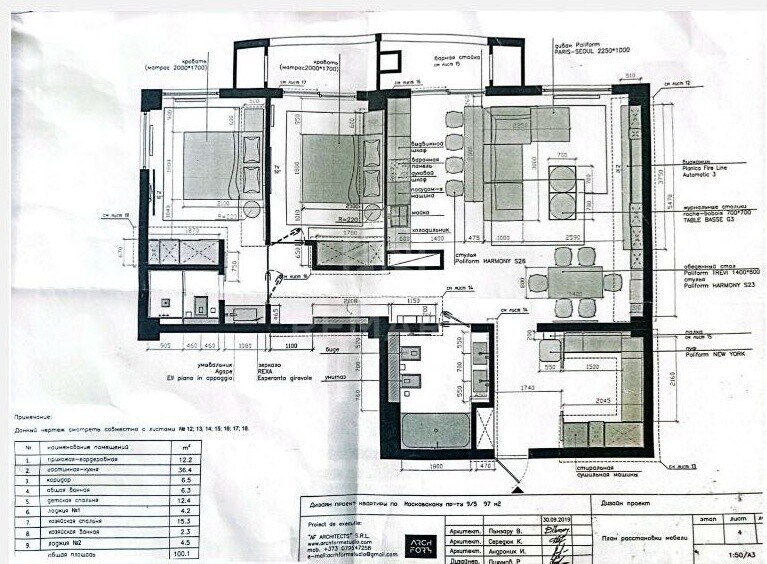 Общая площадь 100 кв.м. с 3 комнатами, разделенными на 2 спальни (в главной спальне есть ванная комната), гостиная с просторной кухней, 2 ванные комнаты, 2 балкона, гардеробная.